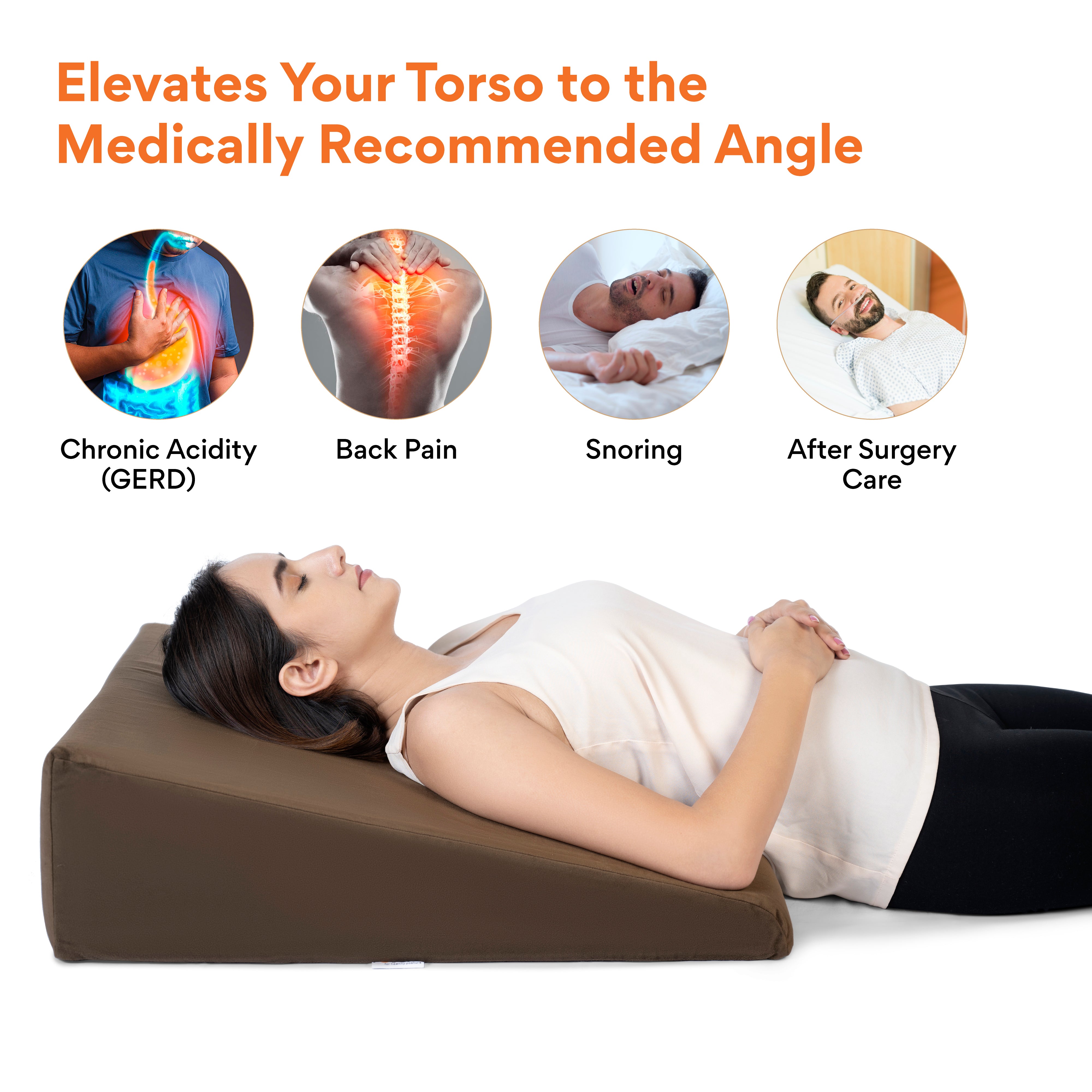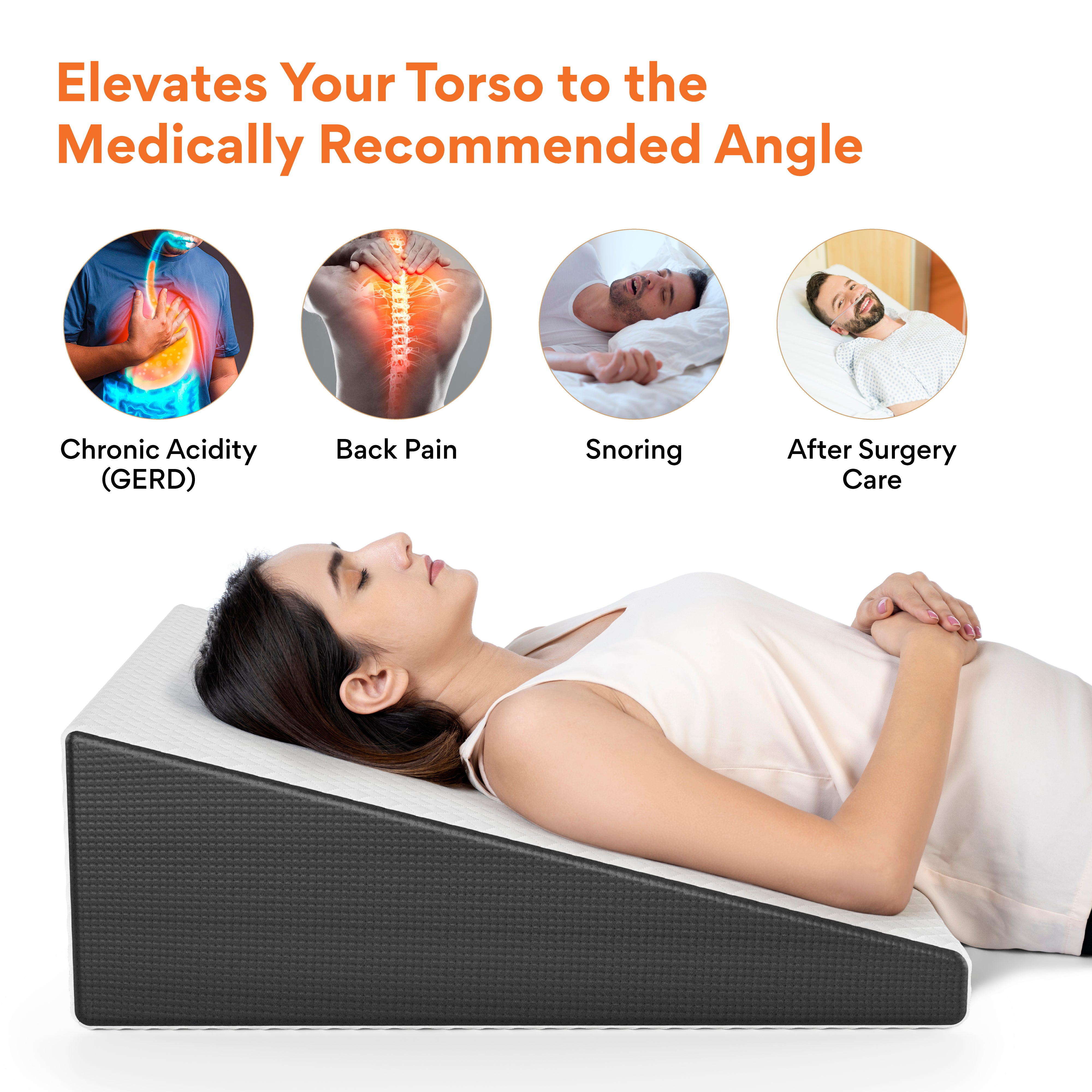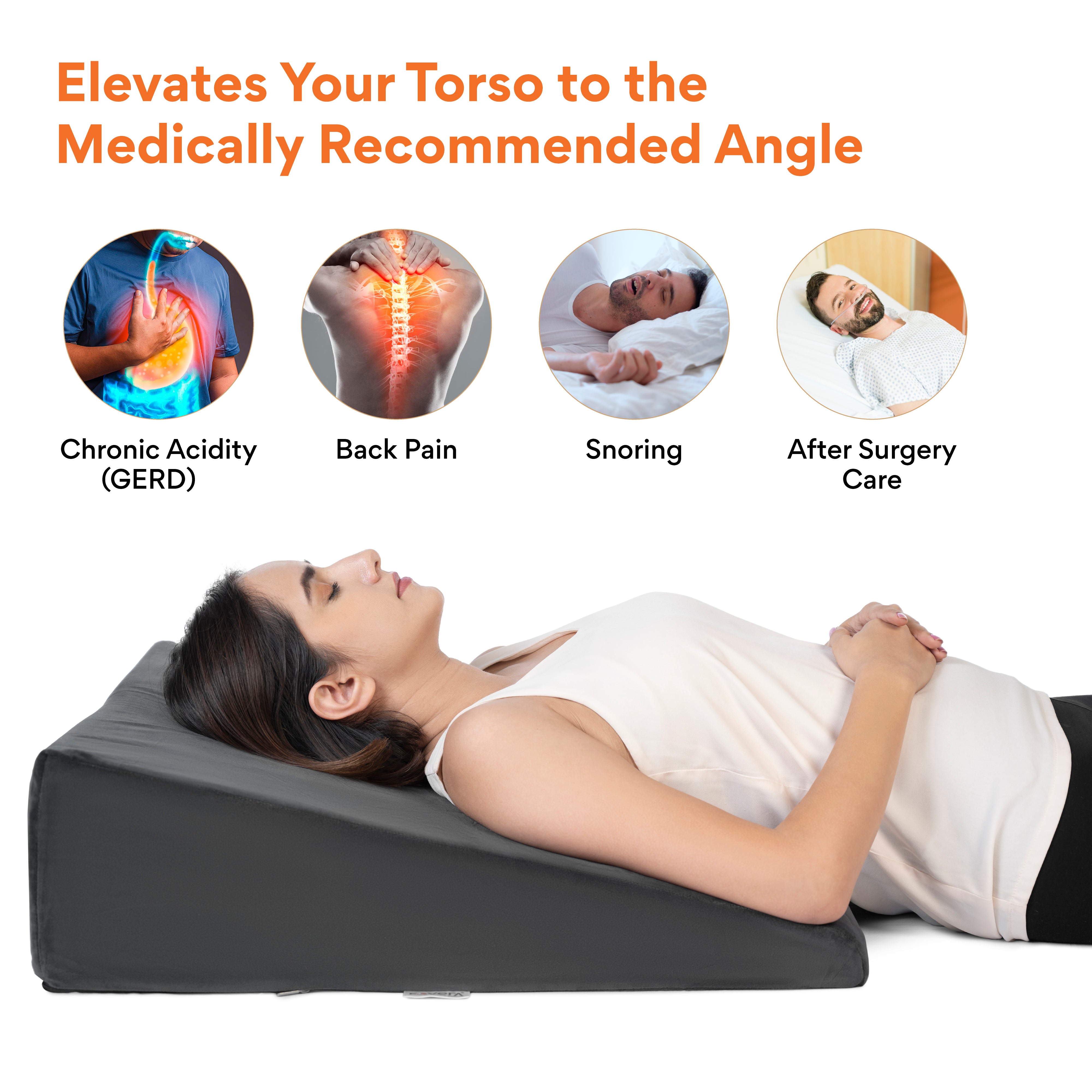 ✅ 𝗖𝗢𝗠𝗙𝗢𝗥𝗧𝗔𝗕𝗟𝗘 𝗘𝗟𝗘𝗩𝗔𝗧𝗜𝗢𝗡 𝗧𝗢 𝗧𝗛𝗘 𝗧𝗢𝗥?𝗢: The wedge pillow elevates the torso to an appropriate angle which keeps stomach acids down and relieves heartburn and acid reflux discomfort.