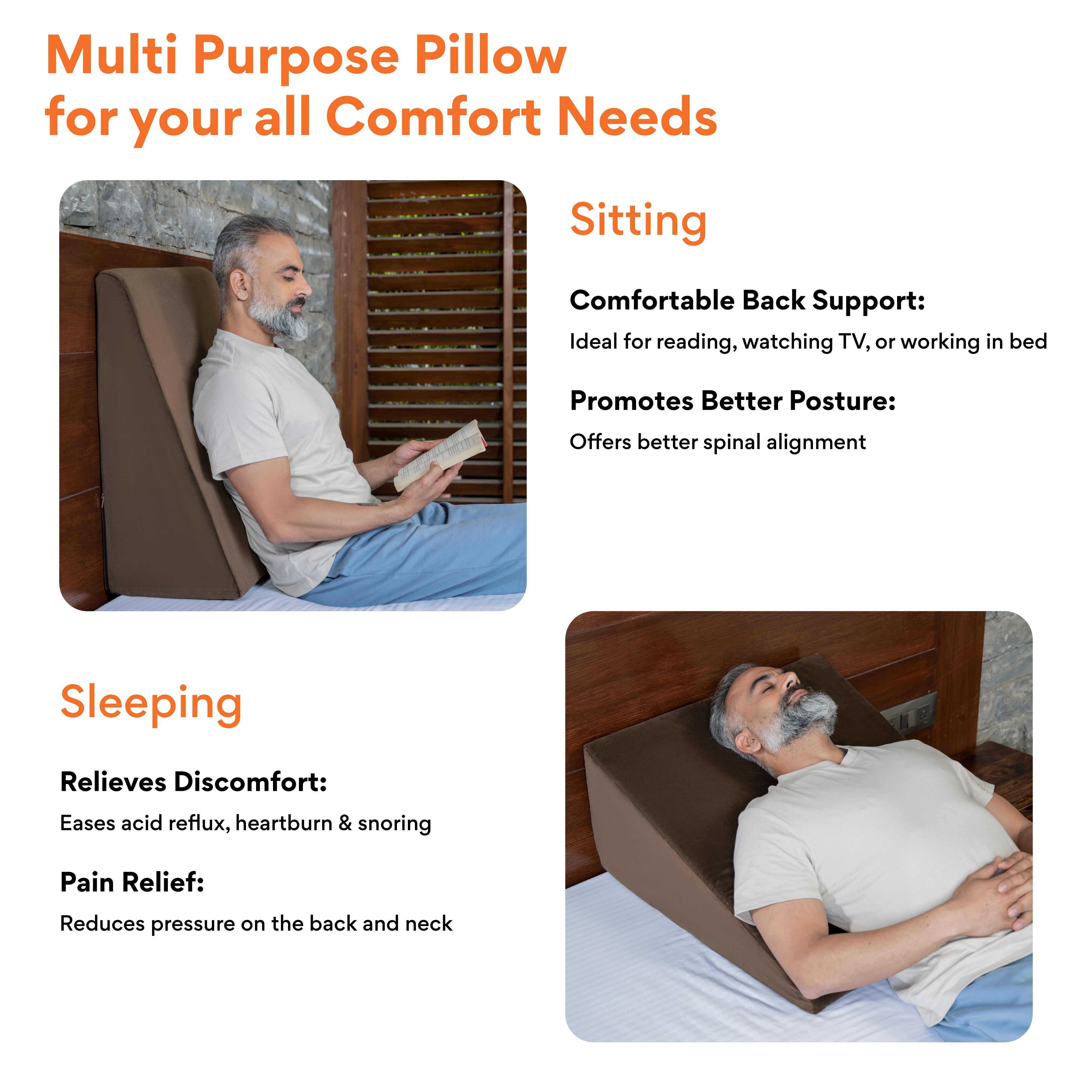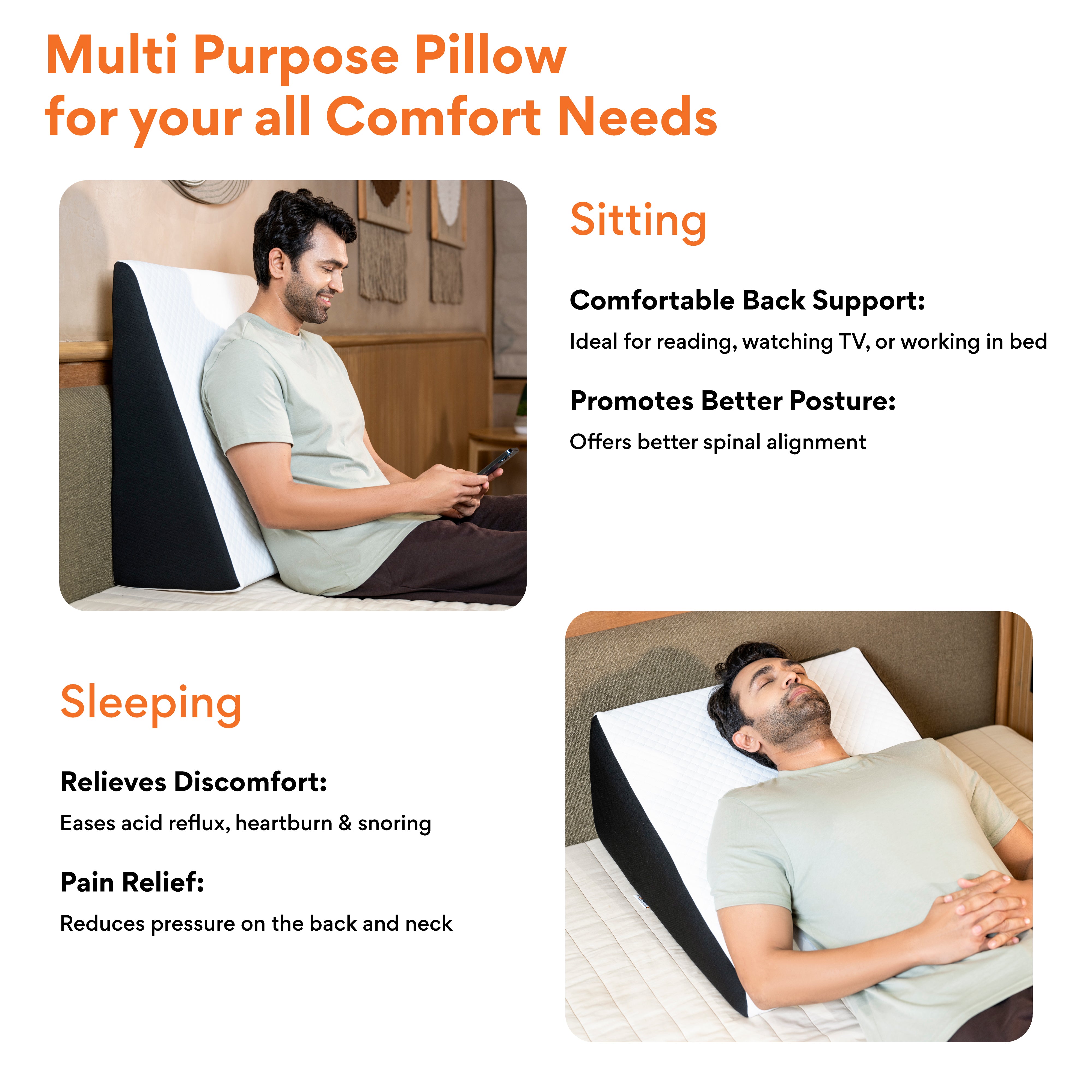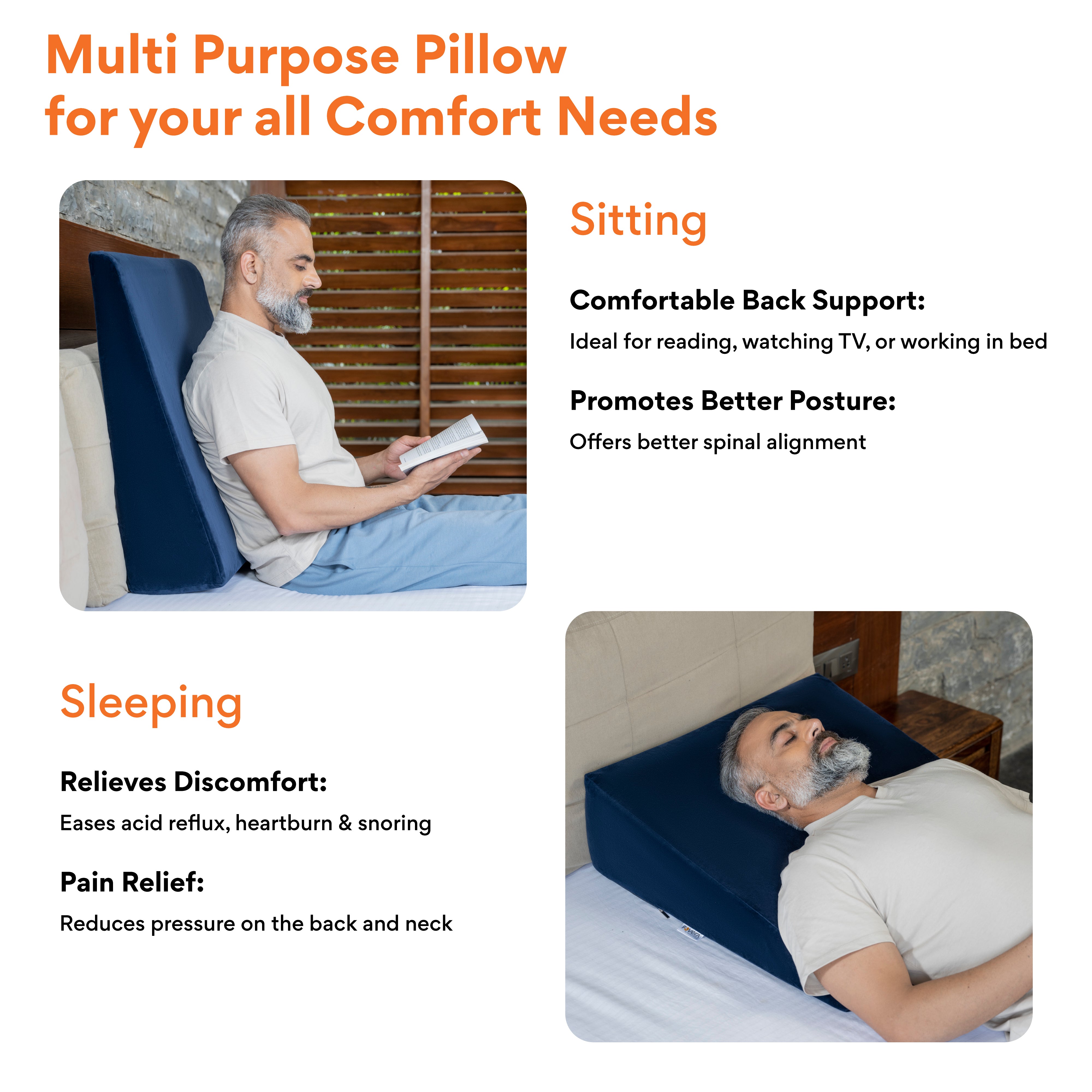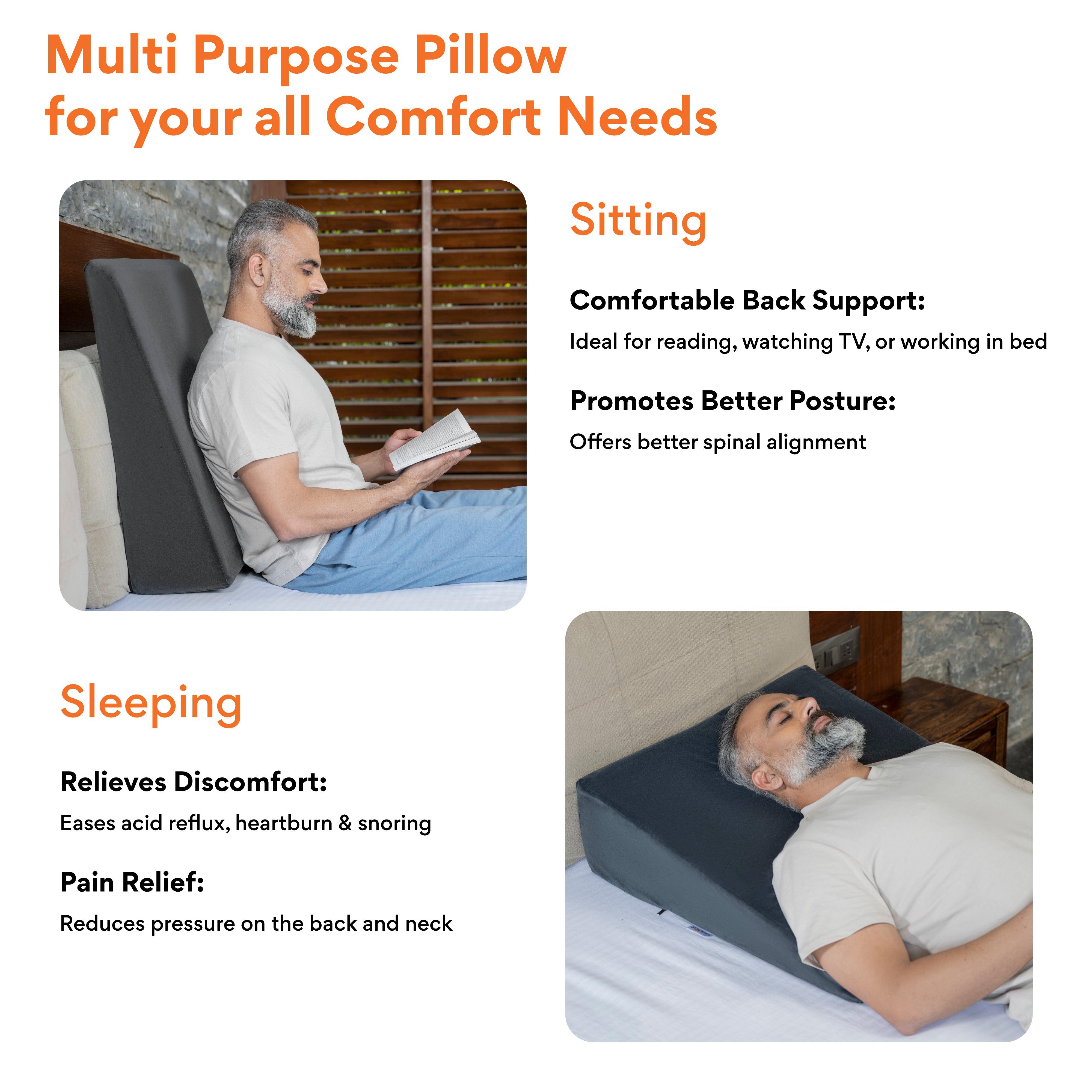 ✅ 𝗖𝗢𝗠𝗙𝗢𝗥𝗧𝗔𝗕𝗟𝗘 𝗘𝗟𝗘𝗩𝗔𝗧𝗜𝗢𝗡 𝗧𝗢 𝗧𝗛𝗘 𝗧𝗢𝗥?𝗢: The wedge pillow elevates the torso to an appropriate angle which keeps stomach acids down and relieves heartburn and acid reflux discomfort.