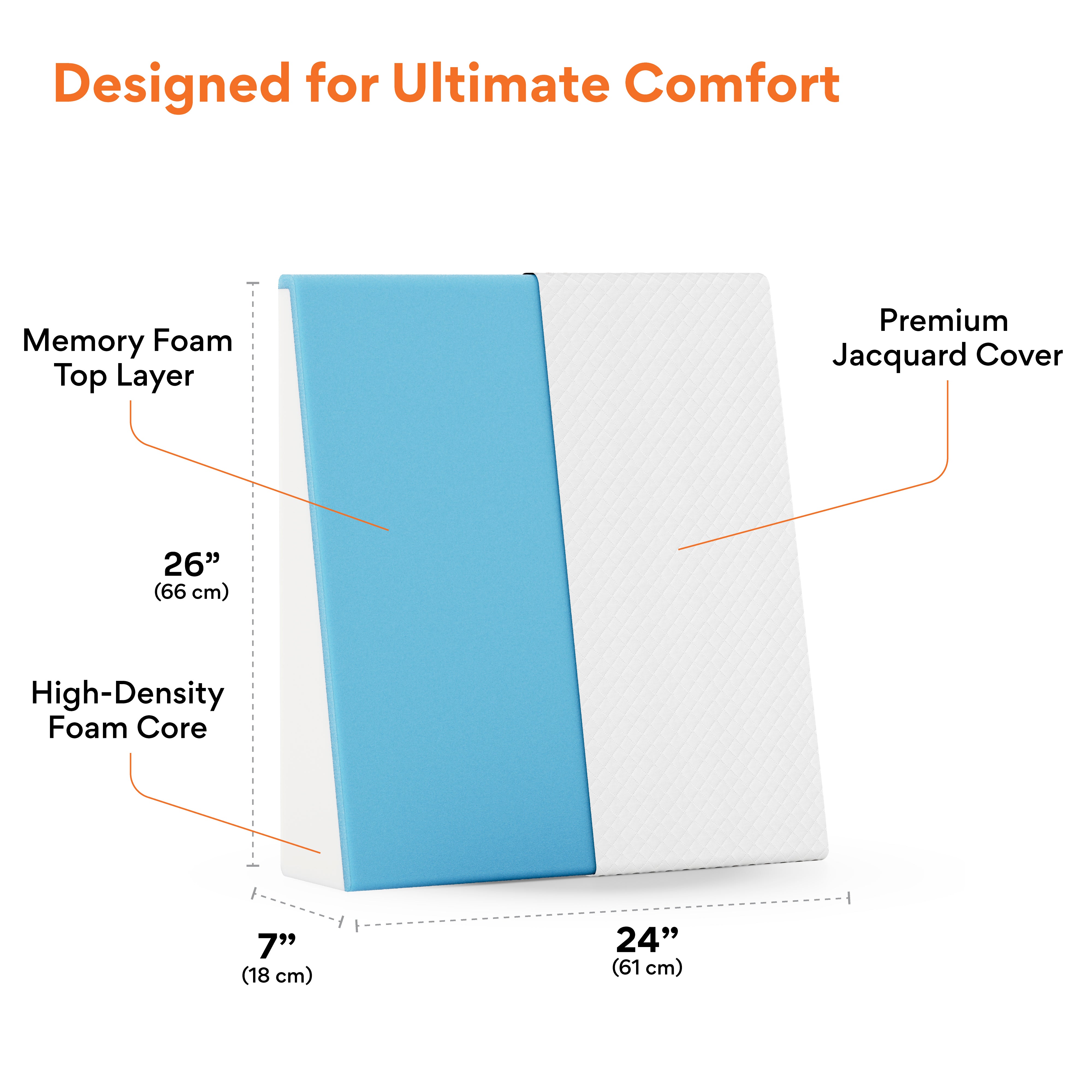 ✅ 𝗛𝗜𝗚𝗛 𝗥𝗘𝗦𝗜𝗟𝗜𝗘𝗡𝗖𝗘 𝗙𝗢𝗔𝗠 𝗪𝗜𝗧𝗛 𝗠𝗘𝗠𝗢𝗥𝗬 𝗙𝗢𝗔𝗠: The high-resilience foam is topped with a 1-inch memory foam layer. High-resilience foam supports the body and memory foam conforms to it. Regardless of prolonged use, the wedge pillow retains its shape.