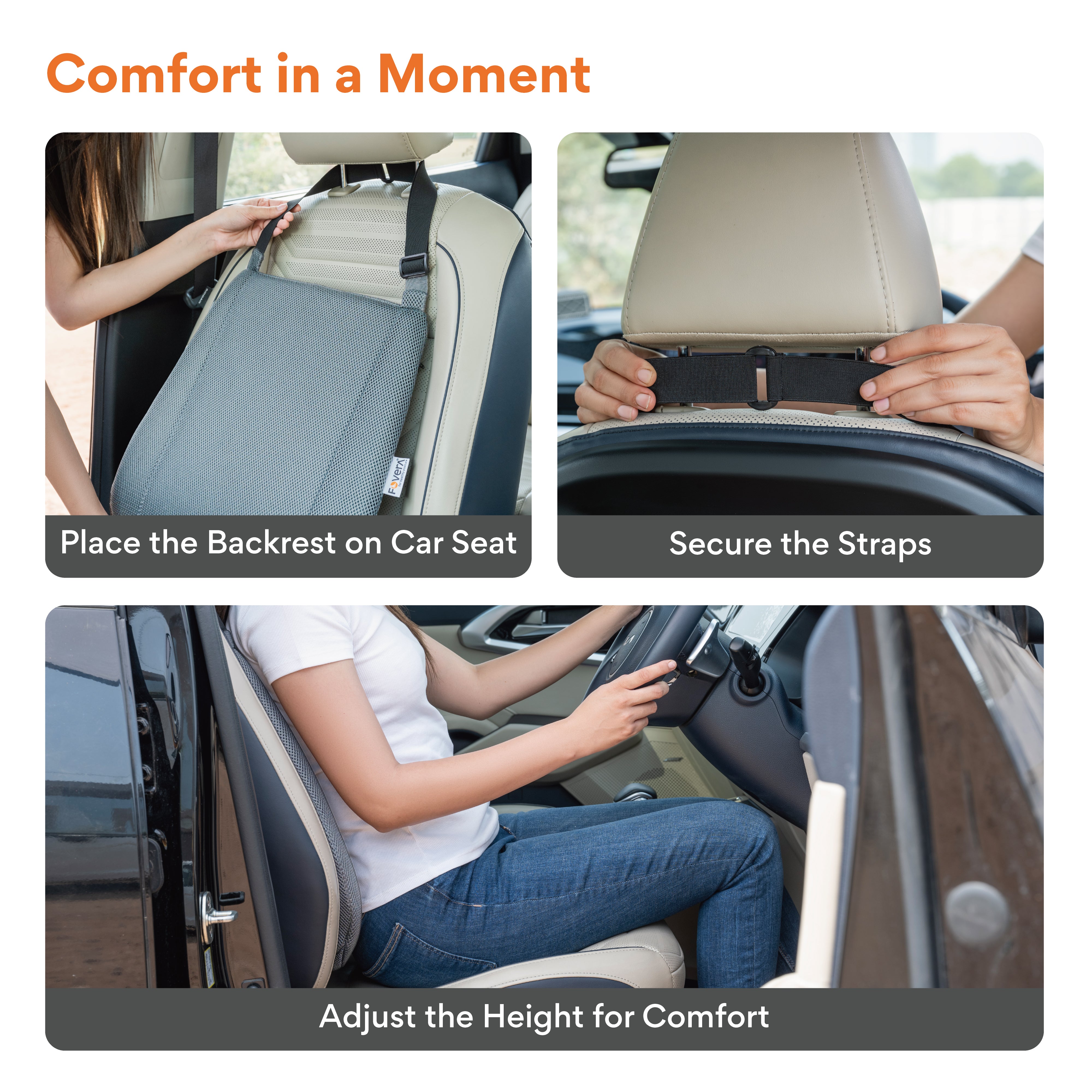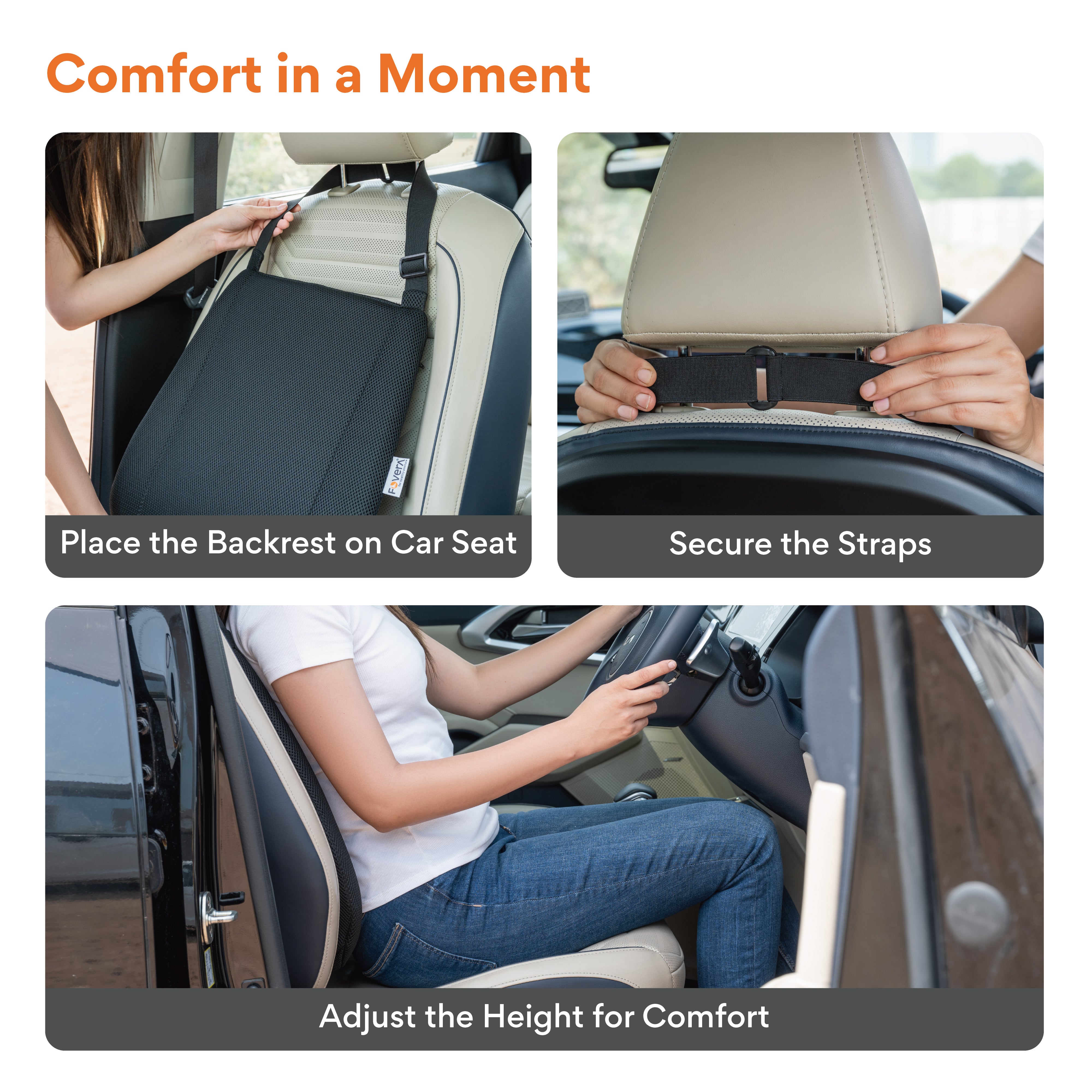 ✅ 𝗕𝗥𝗜𝗡𝗚𝗦 𝗖𝗢𝗠𝗙𝗢𝗥𝗧 𝗧𝗢 𝗗𝗔𝗜𝗟𝗬 𝗖𝗢𝗠𝗠𝗨𝗧𝗘: FOVERA Car Backrest Memory Foam Cushion is ergonomically designed to provide comfort for daily commute. The backrest is designed to provide support to the lower and middle back, preventing back pain.