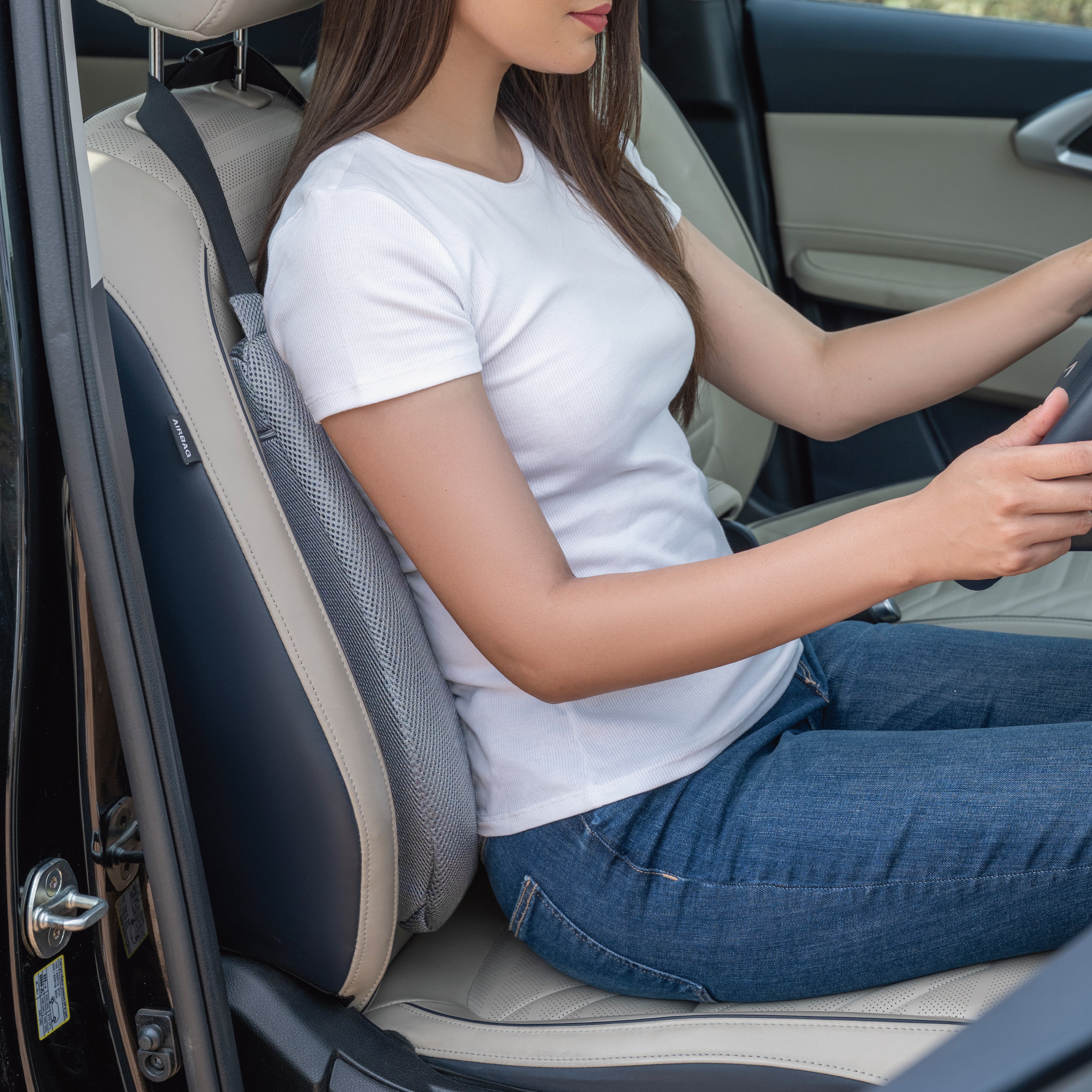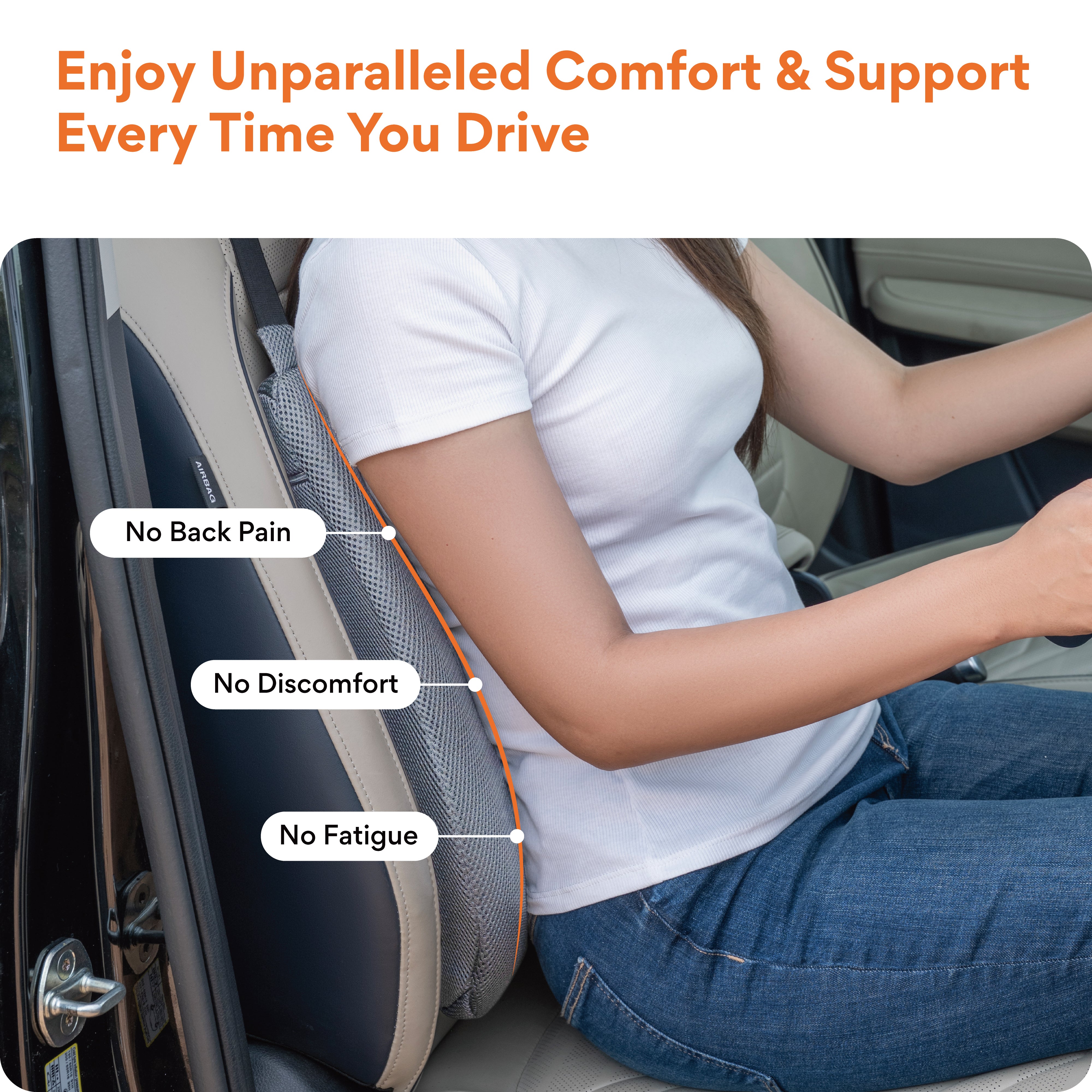 ✅ 𝗣𝗥𝗢𝗠𝗢𝗧𝗘𝗦 𝗕𝗘𝗧𝗧𝗘𝗥 𝗣𝗢𝗦𝗧𝗨𝗥𝗘: This cushion fits perfectly to your back curve for maximum comfort and support while driving. The cushion promotes healthy posture & spine alignment and relieves back pain caused by sitting in a car seat with inadequate lumbar support.