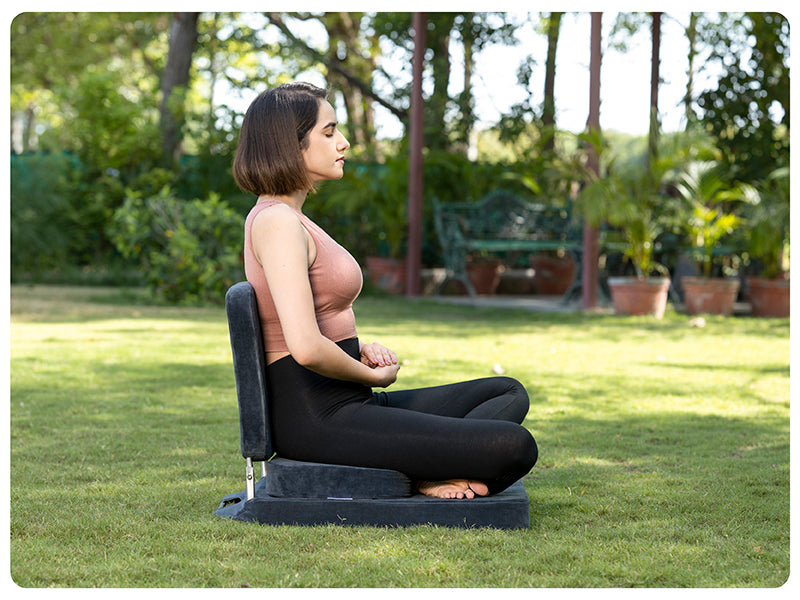 ππππ π¦π¨π£π£π’π₯π§ ππ‘π π ππππ§ππ§ππ’π‘ πππ’ππ: The back support helps keep the spine aligned at a 90-degree angle, preventing back pain during long sitting sessions. The chair includes a foam block which is helpful for those who face difficulties sitting cross-legged or in Padmasana.